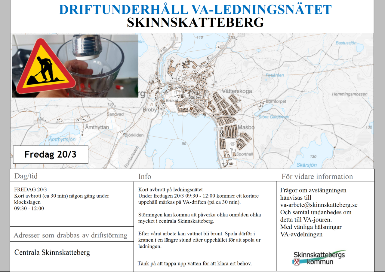 Kortare VA uppehåll Fredagen 20/3
