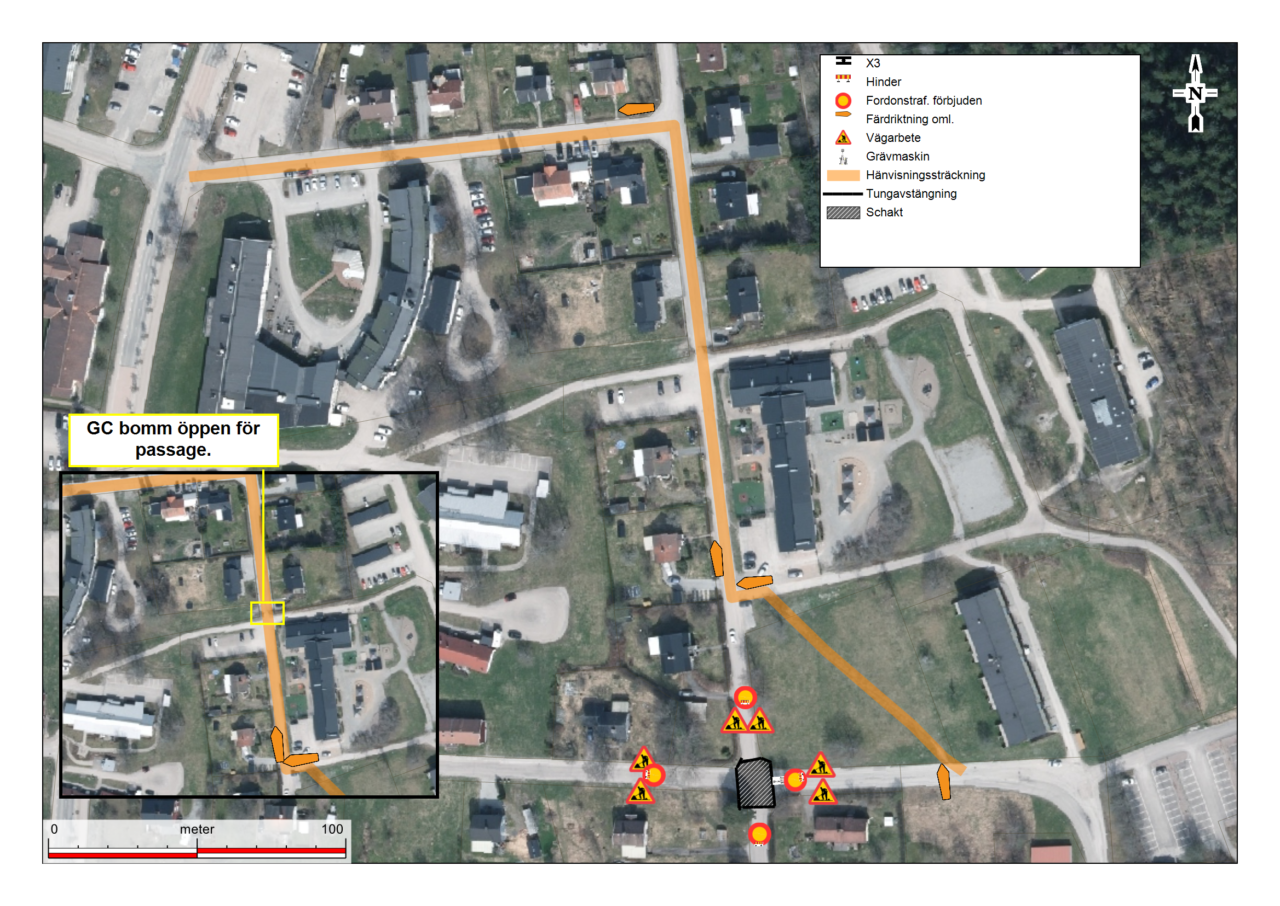 GC bommen i norrgående riktning är öppnad för vidare framkomlighet. I och med detta kommer en tillfällig väg att förläggas över gräsytan nordost om korsningen. Så att trafiken kan fortsätta att flyta på. Se bifogad karta.